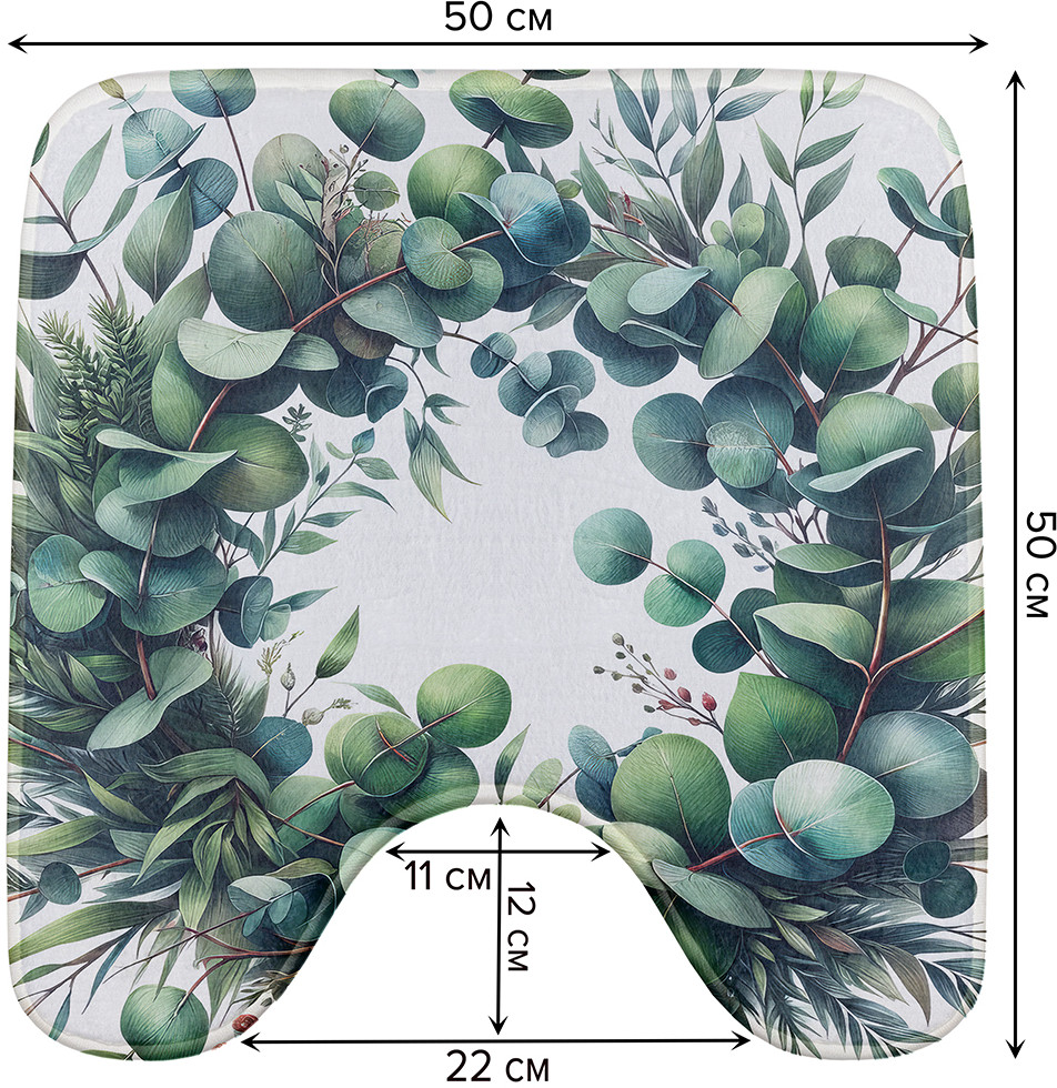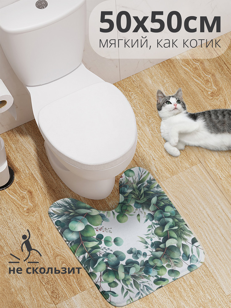 JoyArty Коврик для туалета с вырезом противоскользящий «Венок эвкалипта»