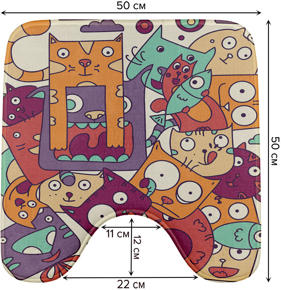 JoyArty Коврик для туалета с вырезом противоскользящий «Квадратный кот»