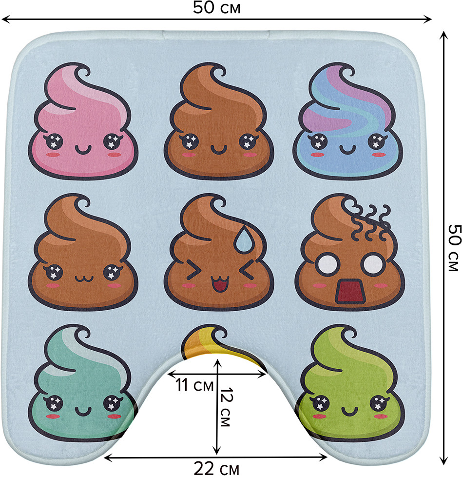 JoyArty Коврик для туалета с вырезом противоскользящий «Разноцветные смайлы»