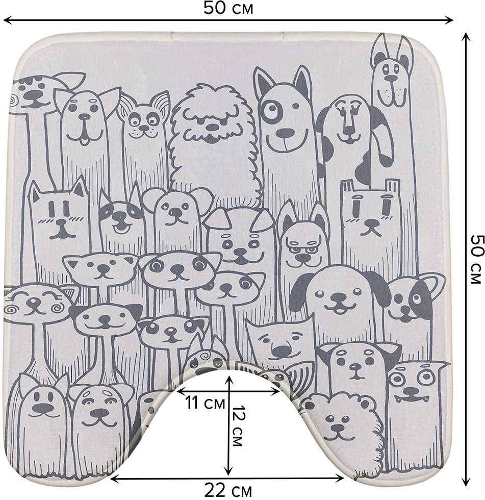 JoyArty Коврик для туалета с вырезом противоскользящий «Семья котов и собак»
