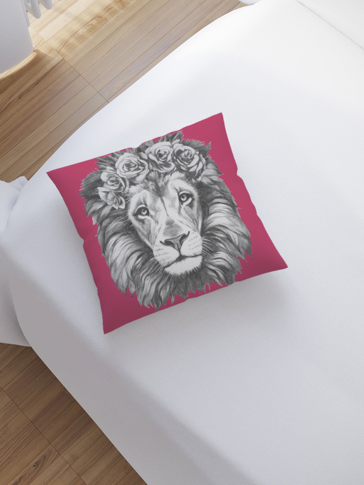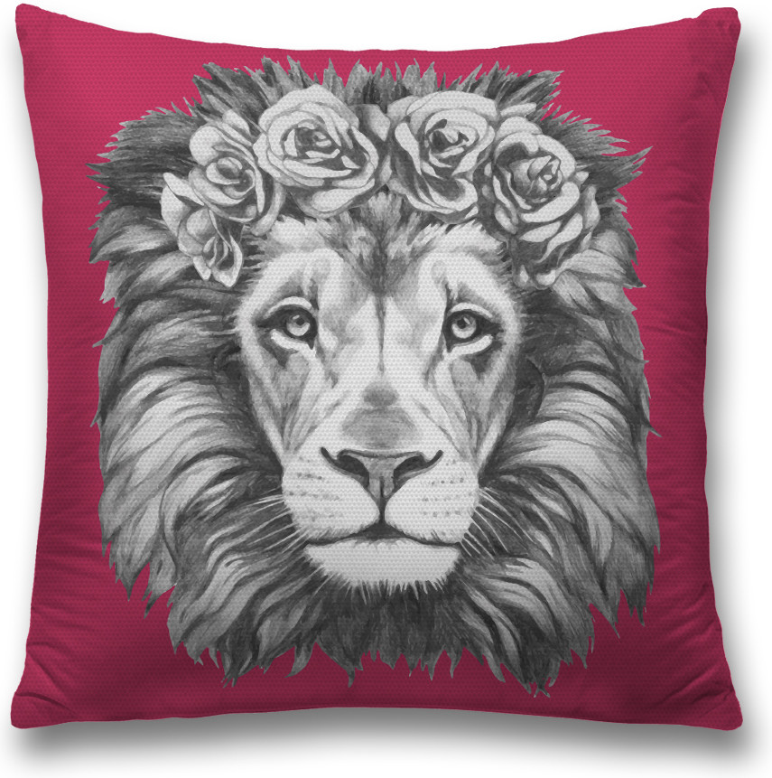 JoyArty Наволочка декоративная «Царь зверей с цветами»