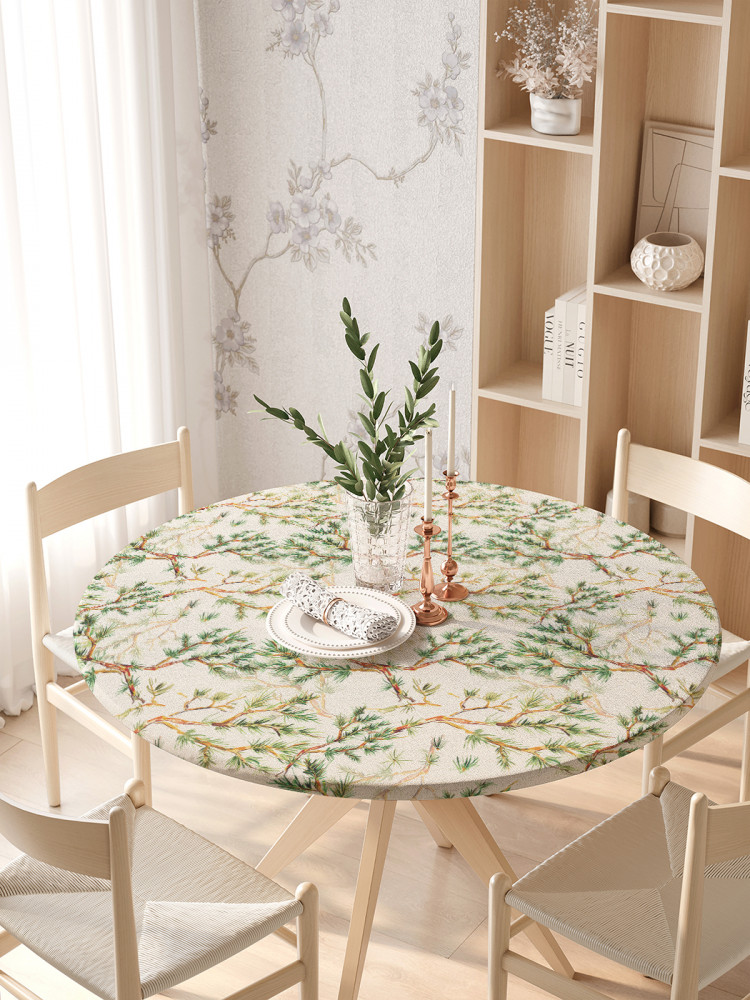 JoyArty Скатерть круглая на резинке «Ветки хвои»