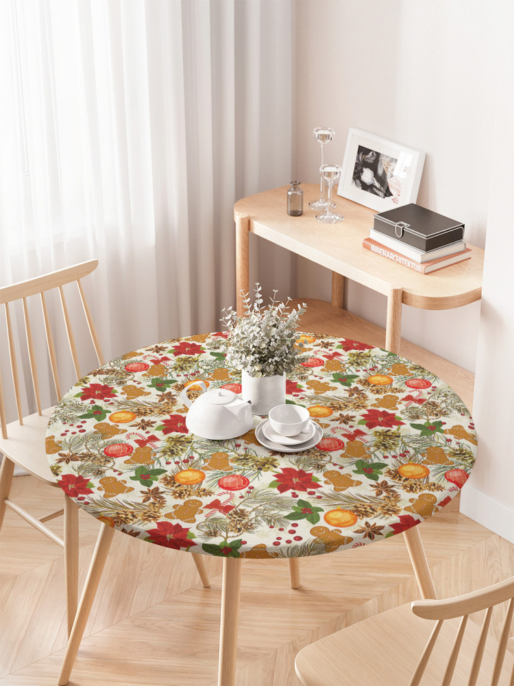 JoyArty Скатерть круглая на резинке «Новогодние цветы»