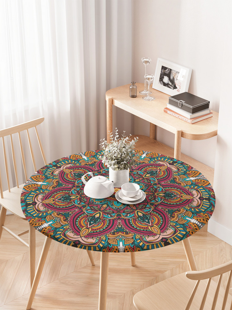 JoyArty Скатерть круглая на резинке «Цветочный орнамент»