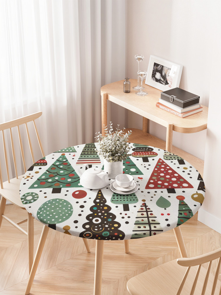 JoyArty Скатерть круглая на резинке «Ярмарка елок»