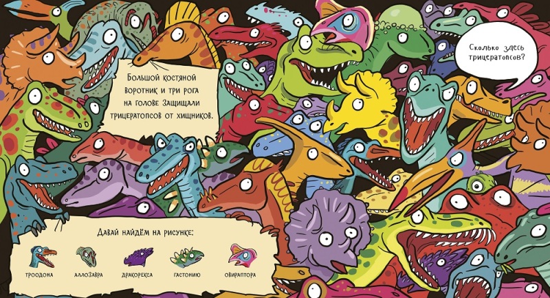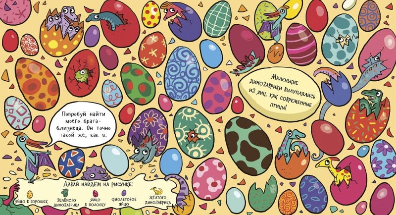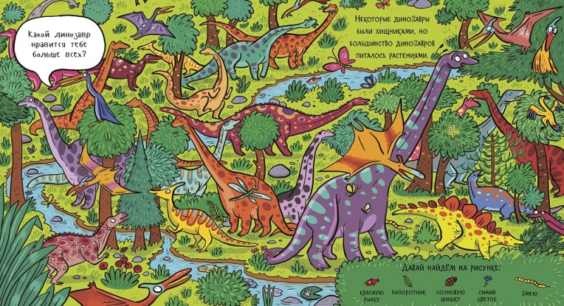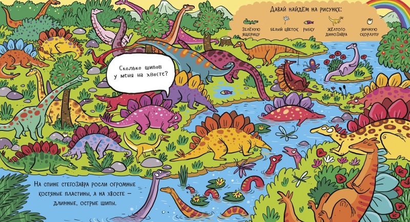 • Книга «Найди динозавра на острове» - это 5 необычных элементов для поиска на каждой странице!