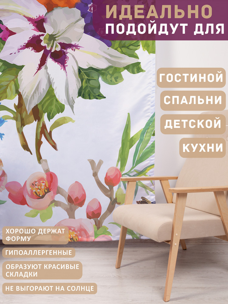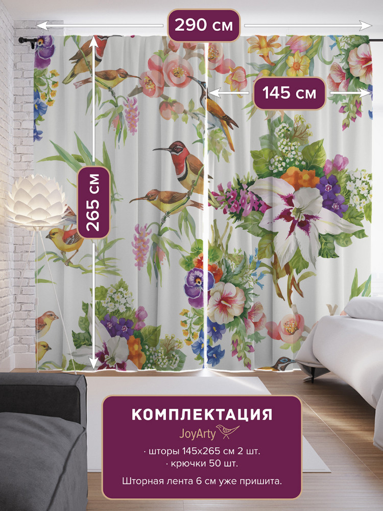 JoyArty Комплект штор «Композиции цветов и птичек»