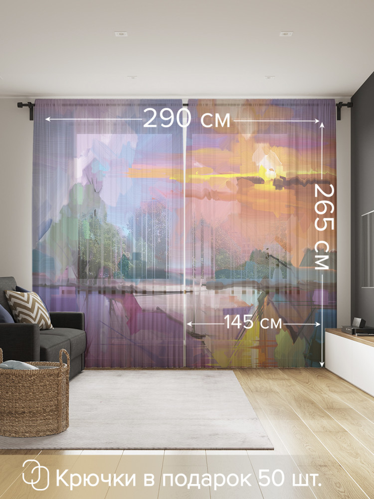 Занавеска длинная на шторной ленте 6 см. уже готова к использованию, ее можно повесить на крючки (в комплекте 50 крючков), карниз для штор, гардину или трубу. Тюль-сеточка с фотопринтом отлично подходит для кухни и комнаты. Края имеют ровный срез, не осыпаются в процессе эксплуатации и не требуют дополнительной обработки. Вуаль подходит для дачи, спальни, балкона, кабинета и детской комнаты, отлично рассеивает и пропускает небольшое количество дневного света около 80%. Яркость рисунка может отличаться от изображения на сайте. Допустимо отклонение в размерах ± 5 см.