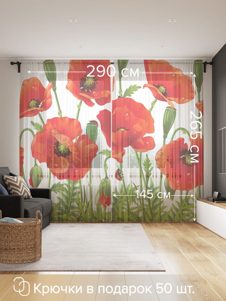 Комплект тюлей «Ароматные маки» | JoyArty