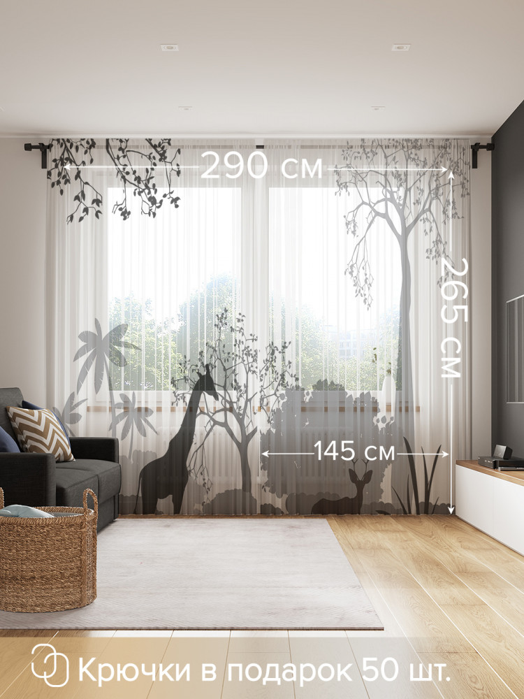 Занавеска длинная на шторной ленте 6 см. уже готова к использованию, ее можно повесить на крючки (в комплекте 50 крючков), карниз для штор, гардину или трубу. Тюль-сеточка с фотопринтом отлично подходит для кухни и комнаты. Края имеют ровный срез, не осыпаются в процессе эксплуатации и не требуют дополнительной обработки. Вуаль подходит для дачи, спальни, балкона, кабинета и детской комнаты, отлично рассеивает и пропускает небольшое количество дневного света около 80%. Яркость рисунка может отличаться от изображения на сайте. Допустимо отклонение в размерах ± 5 см.