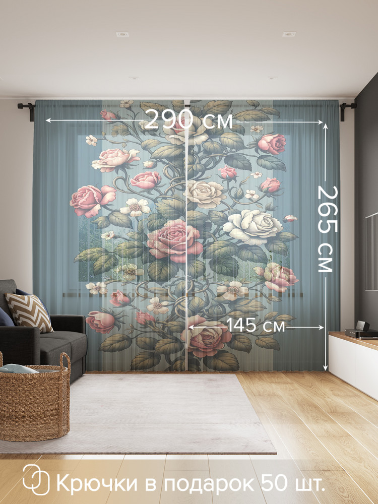 Комплект тюлей «Бутоны роз» | JoyArty