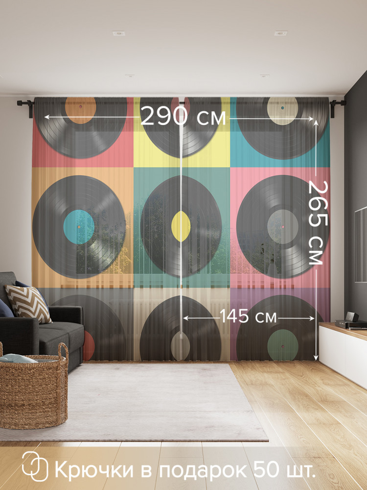 Комплект тюлей «Виниловые пластинки» | JoyArty