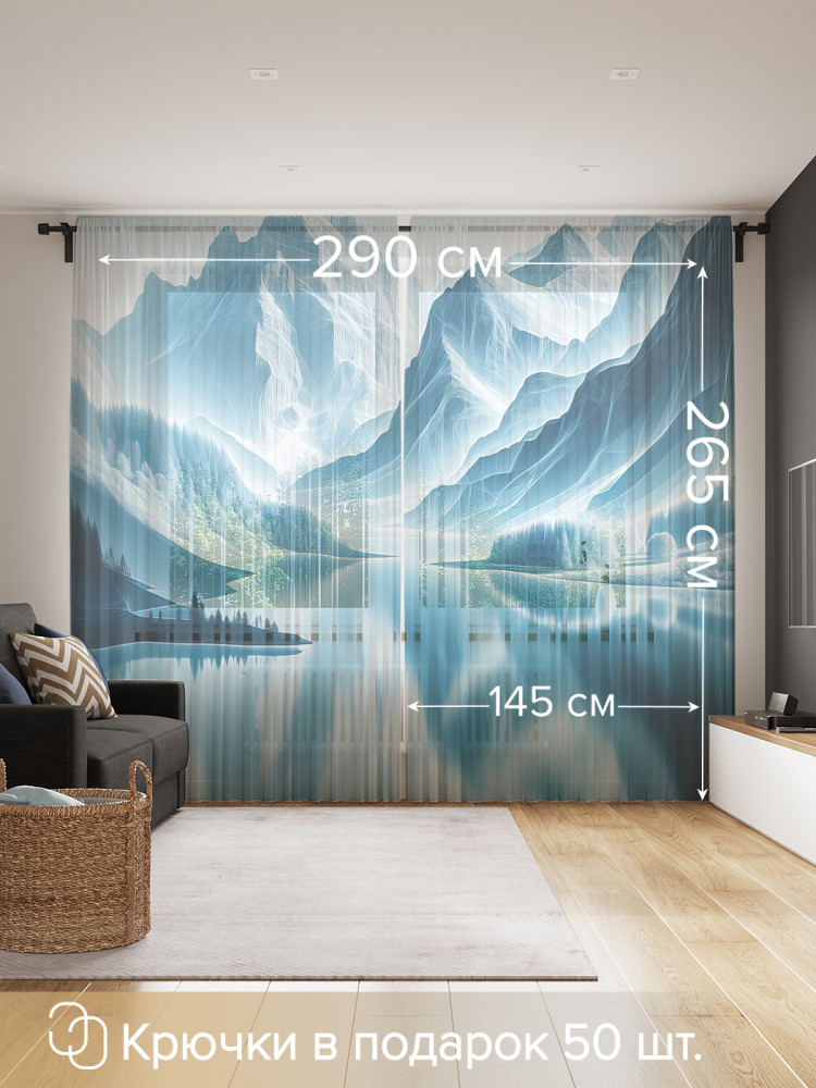Занавеска длинная на шторной ленте 6 см. уже готова к использованию, ее можно повесить на крючки (в комплекте 50 крючков), карниз для штор, гардину или трубу. Тюль-сеточка с фотопринтом отлично подходит для кухни и комнаты. Края имеют ровный срез, не осыпаются в процессе эксплуатации и не требуют дополнительной обработки. Вуаль подходит для дачи, спальни, балкона, кабинета и детской комнаты, отлично рассеивает и пропускает небольшое количество дневного света около 80%. Яркость рисунка может отличаться от изображения на сайте. Допустимо отклонение в размерах ± 5 см.
