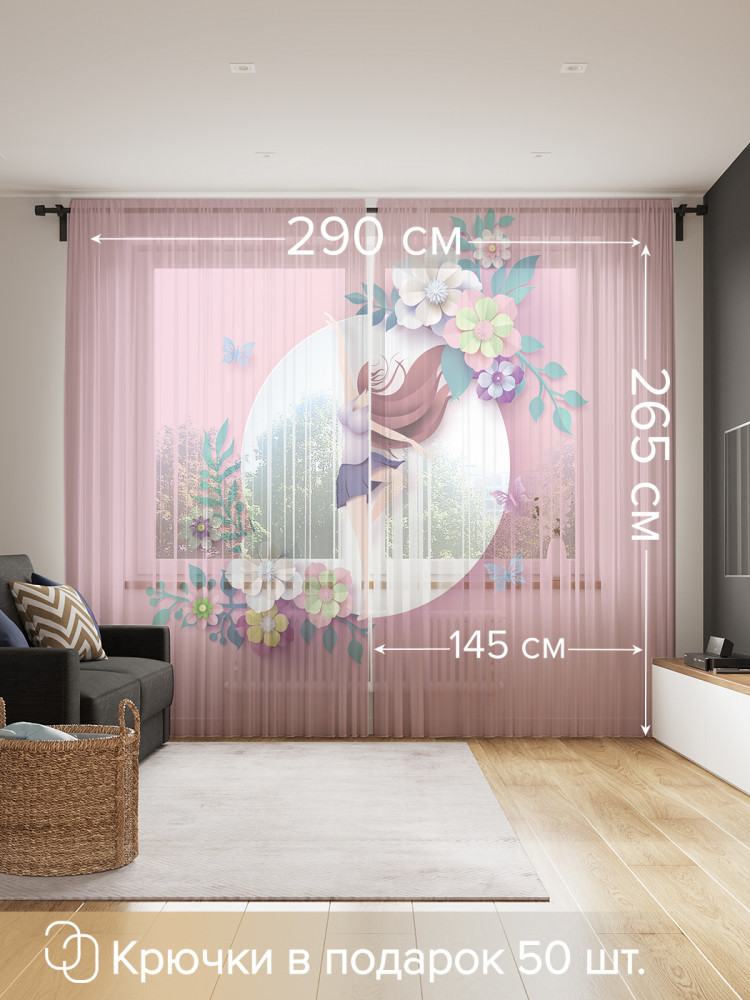 Комплект тюлей «Девушка в танце с цветами» | JoyArty