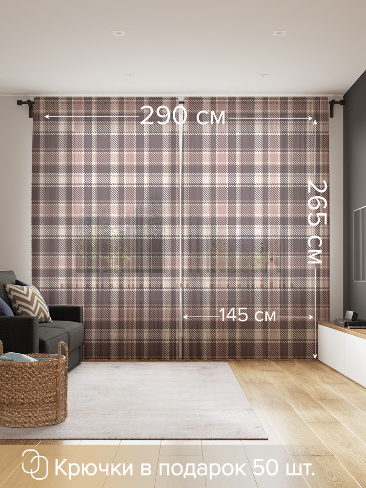 Комплект тюлей «Каштановая клетка» | JoyArty