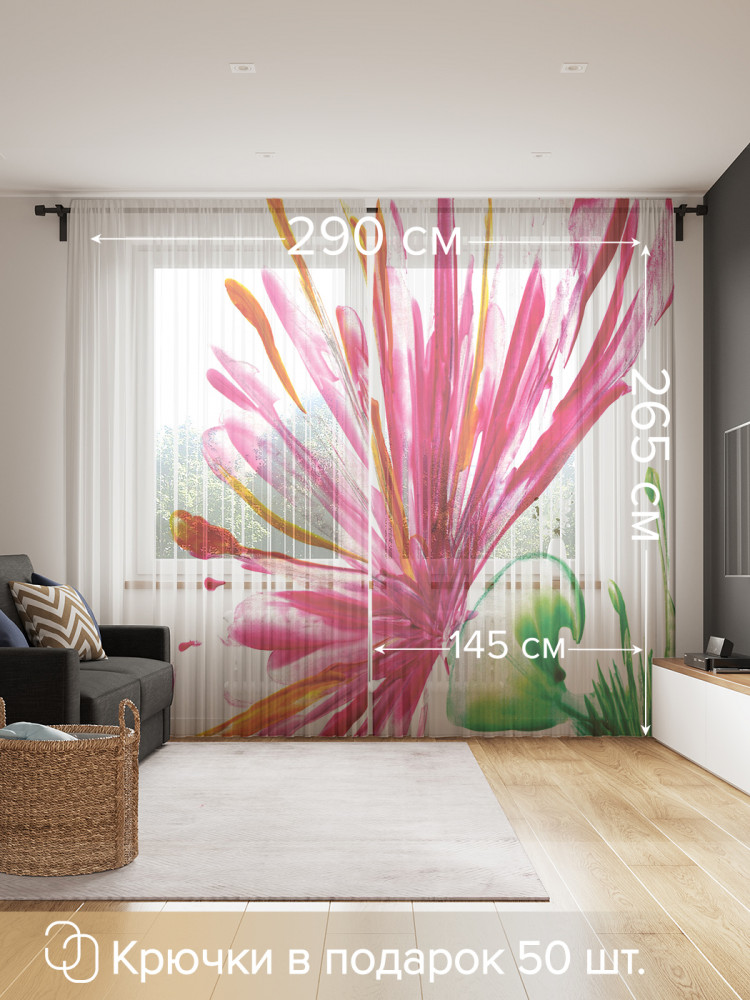 Занавеска длинная на шторной ленте 6 см. уже готова к использованию, ее можно повесить на крючки (в комплекте 50 крючков), карниз для штор, гардину или трубу. Тюль-сеточка с фотопринтом отлично подходит для кухни и комнаты. Края имеют ровный срез, не осыпаются в процессе эксплуатации и не требуют дополнительной обработки. Вуаль подходит для дачи, спальни, балкона, кабинета и детской комнаты, отлично рассеивает и пропускает небольшое количество дневного света около 80%. Яркость рисунка может отличаться от изображения на сайте. Допустимо отклонение в размерах ± 5 см.