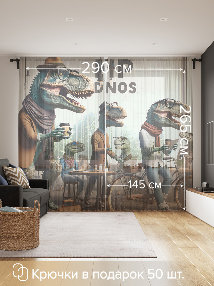 Комплект тюлей «Модные динозавтры» | JoyArty