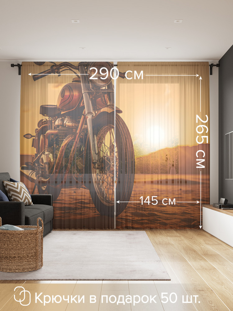 Комплект тюлей «Мотоцикл на закате» | JoyArty
