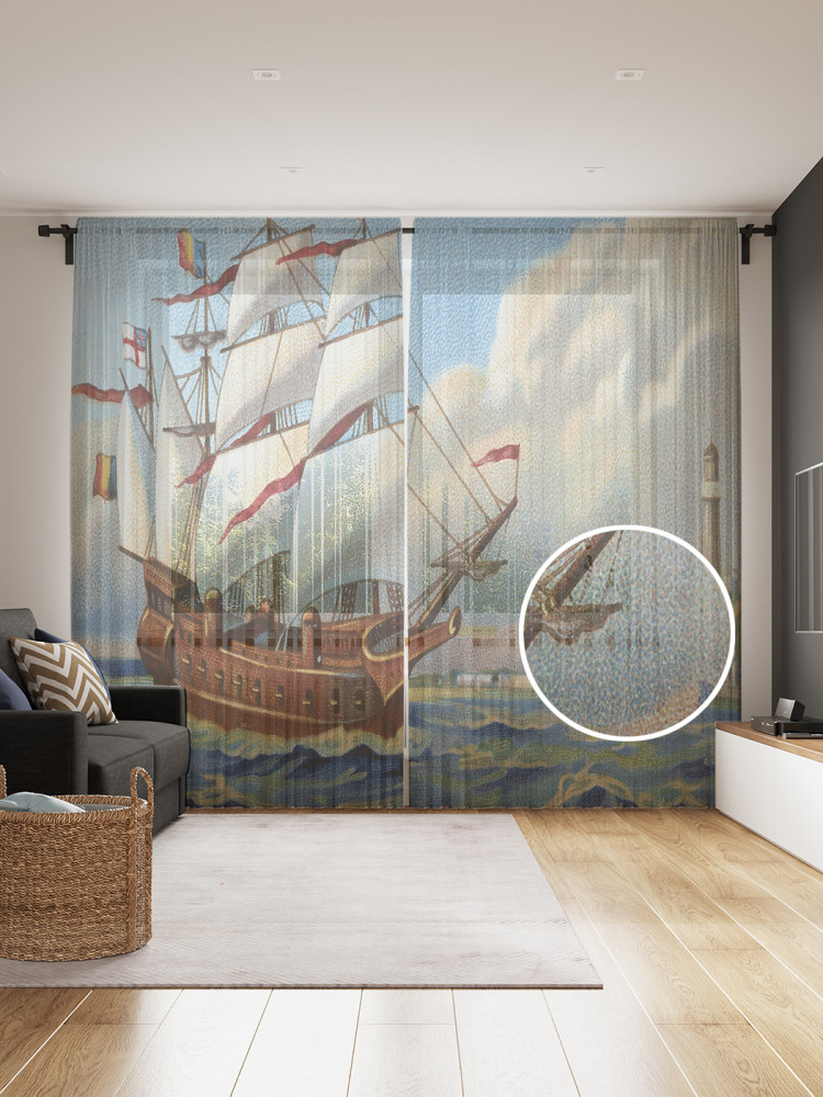 Комплект тюлей «Прибытие парусника в порт» | JoyArty