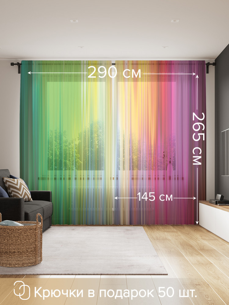 Занавеска длинная на шторной ленте 6 см. уже готова к использованию, ее можно повесить на крючки (в комплекте 50 крючков), карниз для штор, гардину или трубу. Тюль-сеточка с фотопринтом отлично подходит для кухни и комнаты. Края имеют ровный срез, не осыпаются в процессе эксплуатации и не требуют дополнительной обработки. Вуаль подходит для дачи, спальни, балкона, кабинета и детской комнаты, отлично рассеивает и пропускает небольшое количество дневного света около 80%. Яркость рисунка может отличаться от изображения на сайте. Допустимо отклонение в размерах ± 5 см.