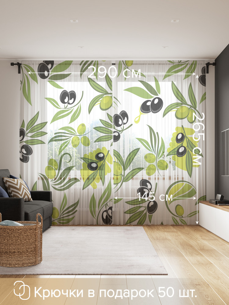 Комплект тюлей «Свежие оливковые ветви» | JoyArty