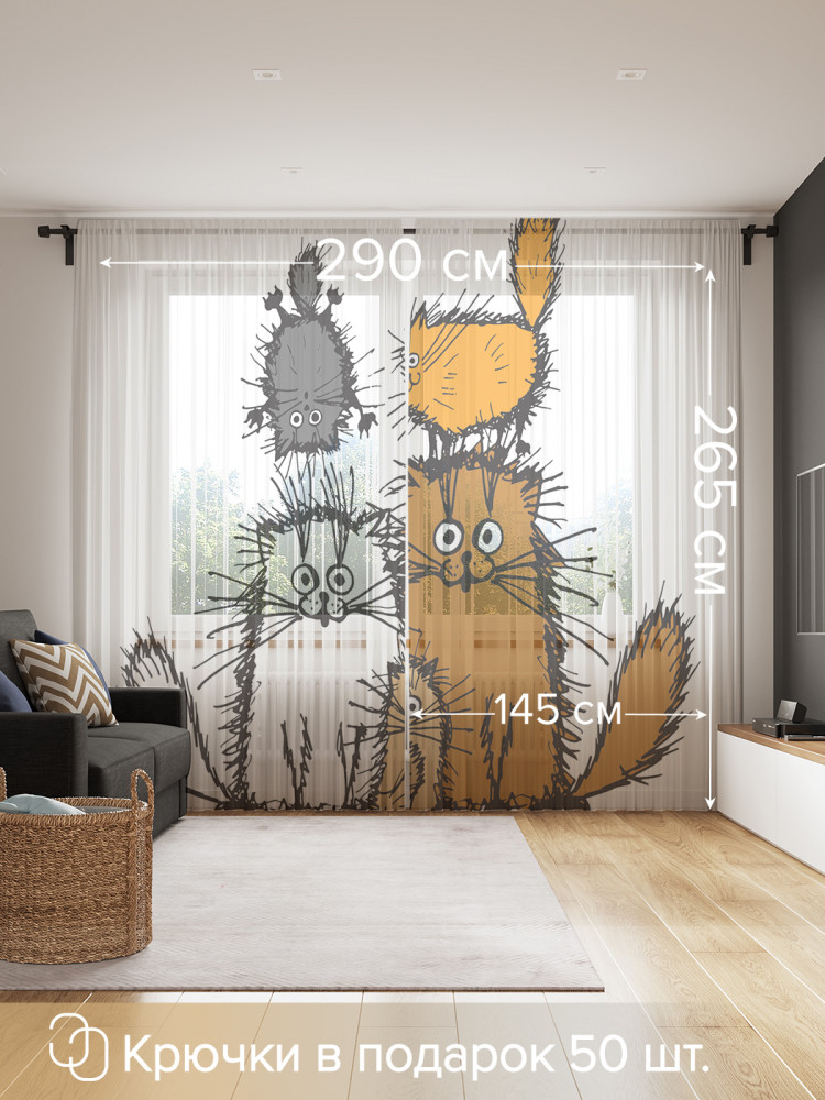JoyArty Комплект тюлей «Семейство котов»