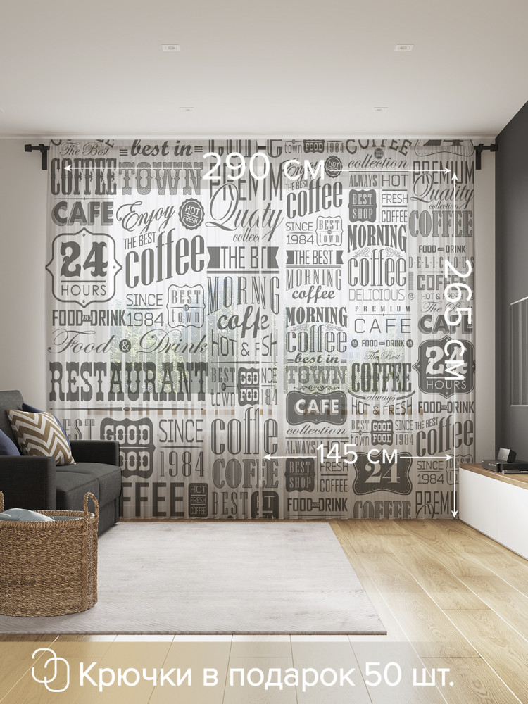 Занавеска длинная на шторной ленте 6 см. уже готова к использованию, ее можно повесить на крючки (в комплекте 50 крючков), карниз для штор, гардину или трубу. Тюль-сеточка с фотопринтом отлично подходит для кухни и комнаты. Края имеют ровный срез, не осыпаются в процессе эксплуатации и не требуют дополнительной обработки. Вуаль подходит для дачи, спальни, балкона, кабинета и детской комнаты, отлично рассеивает и пропускает небольшое количество дневного света около 80%. Яркость рисунка может отличаться от изображения на сайте. Допустимо отклонение в размерах ± 5 см.