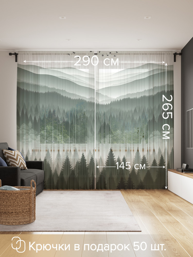 Занавеска длинная на шторной ленте 6 см. уже готова к использованию, ее можно повесить на крючки (в комплекте 50 крючков), карниз для штор, гардину или трубу. Тюль-сеточка с фотопринтом отлично подходит для кухни и комнаты. Края имеют ровный срез, не осыпаются в процессе эксплуатации и не требуют дополнительной обработки. Вуаль подходит для дачи, спальни, балкона, кабинета и детской комнаты, отлично рассеивает и пропускает небольшое количество дневного света около 80%. Яркость рисунка может отличаться от изображения на сайте. Допустимо отклонение в размерах ± 5 см.