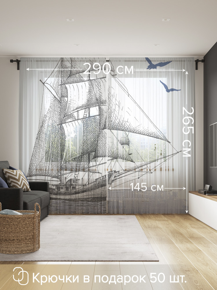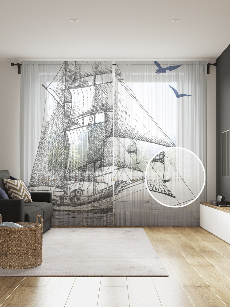 Комплект тюлей «Чайки над парусником» | JoyArty