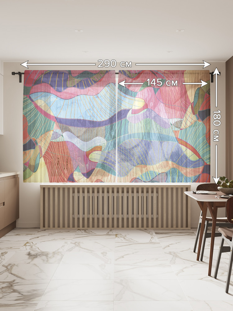 Занавеска на шторной ленте 6 см. уже готова к использованию, ее можно повесить на крючки (в комплекте 50 крючков), карниз для штор, гардину или трубу. Тюль-сеточка с фотопринтом отлично подходит для кухни и комнаты. Края имеют ровный срез, не осыпаются в процессе эксплуатации и не требуют дополнительной обработки. Вуаль подходит для дачи, спальни, балкона, кабинета и детской комнаты, отлично рассеивает и пропускает небольшое количество дневного света около 80%. Яркость рисунка может отличаться от изображения на сайте. Допустимо отклонение в размерах ± 5 см.