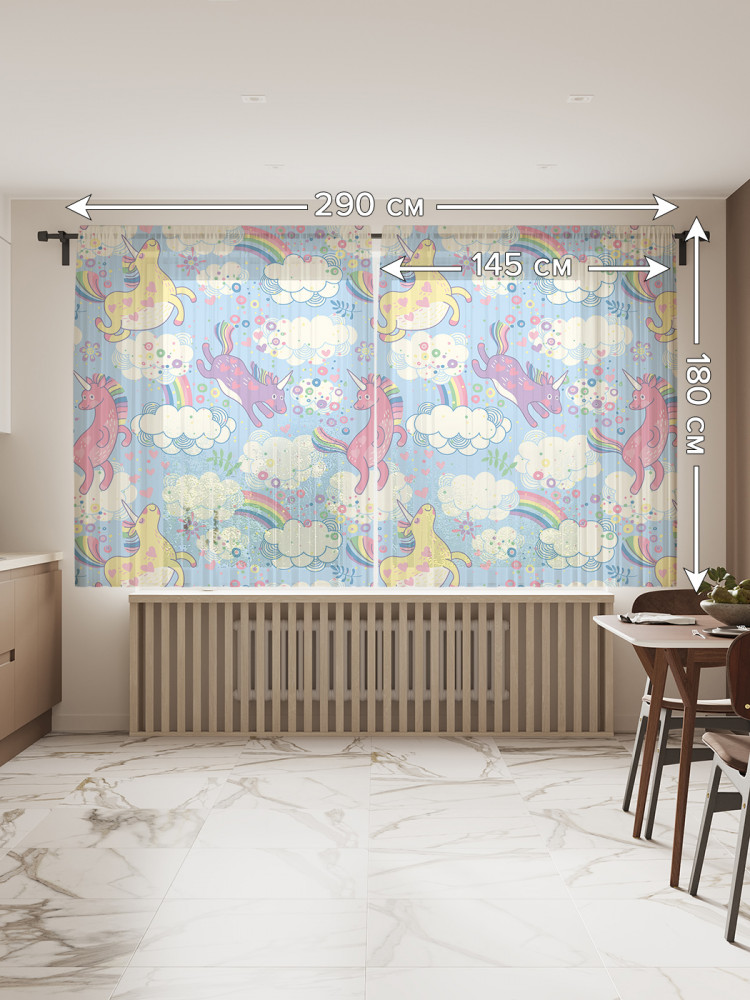 JoyArty Комплект тюлей «Единороги в облаках»