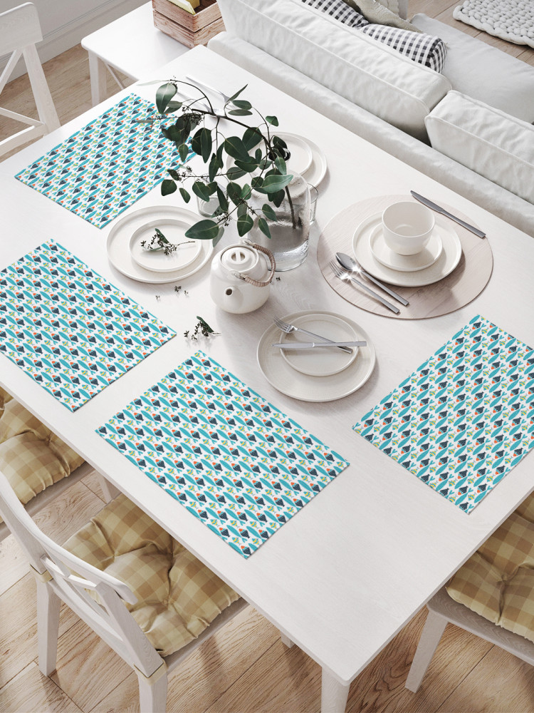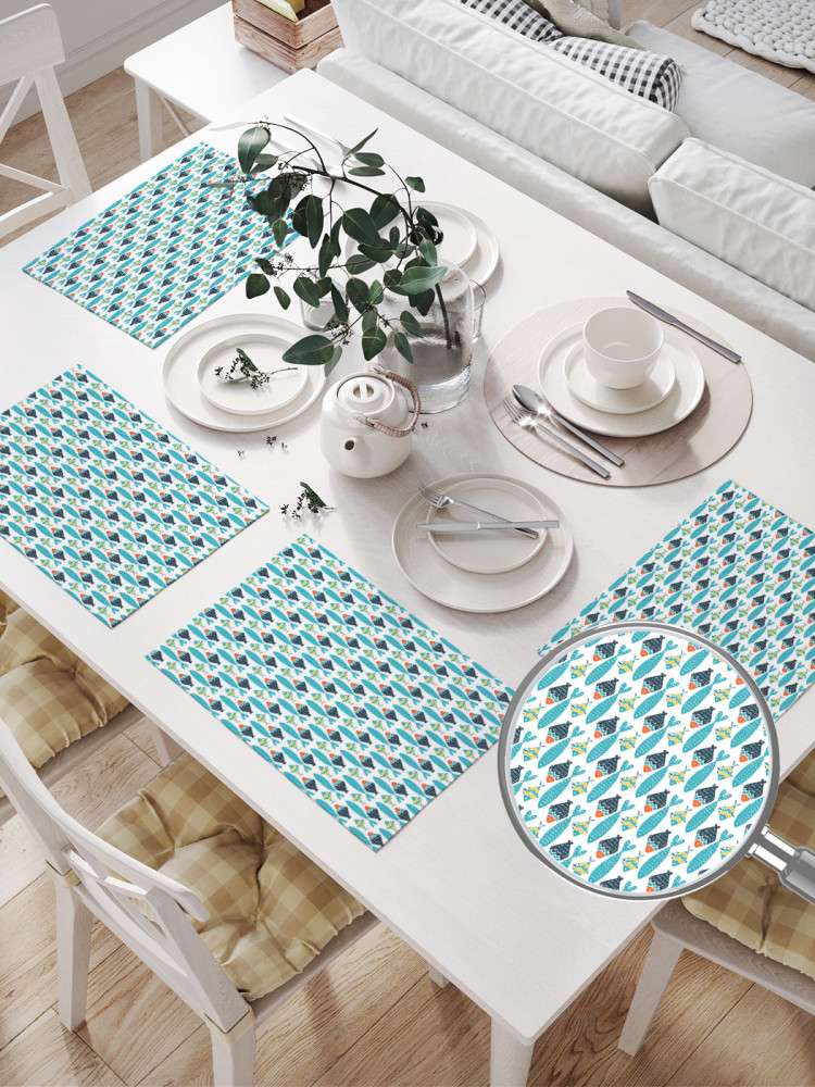 JoyArty Комплект плейсматов «Пестрый косяк рыб»В данный момент этот товар отсутствует в продаже. Возможно, у нас найдется аналогичный или похожий товар здесь. Комплект из 4 тканевых плейсматов для сервировки обеденного пространства и декора кухни. Салфетки изготовлены из износостойкого и гипоаллергенного материала «Oxford» (100% полиэстер) плотностью 200 гр./кв.м., фактура рогожка. Особенностью ткани является водоотталкивающая пропитка. Изделие можно стирать при температуре 30-40 градусов, выбирая деликатный режим стирки. Принт нанесен с одной стороны. Аксессуар станет не только украшением вашего стола, но и защитит поверхность от возможных загрязнений, горячих тарелок и царапин. Яркость рисунка может отличаться от изображения на сайте. Допустимо отклонение в размерах ±2 см. |