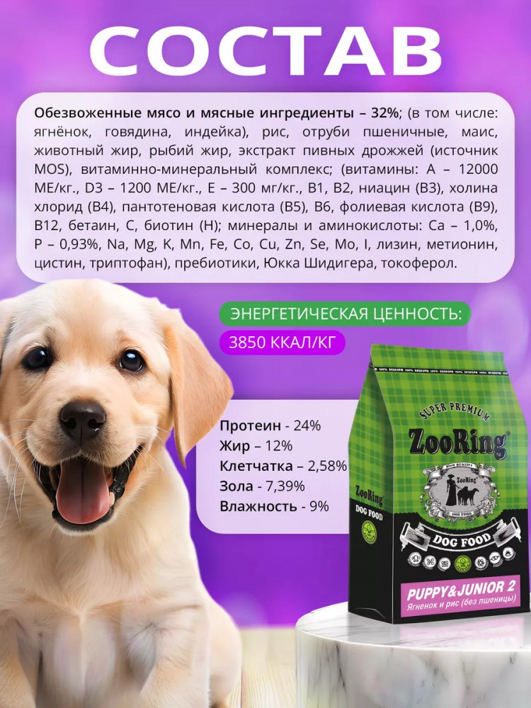 ZooRing Корм сухой для щенков и юниоров всех пород «Ягненок и рис»