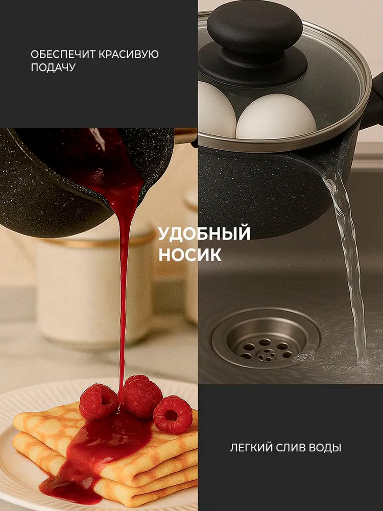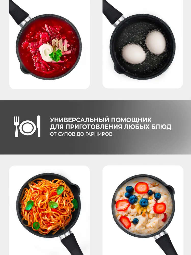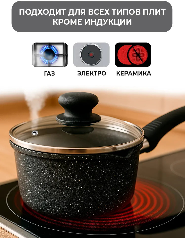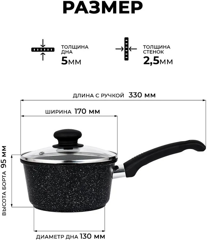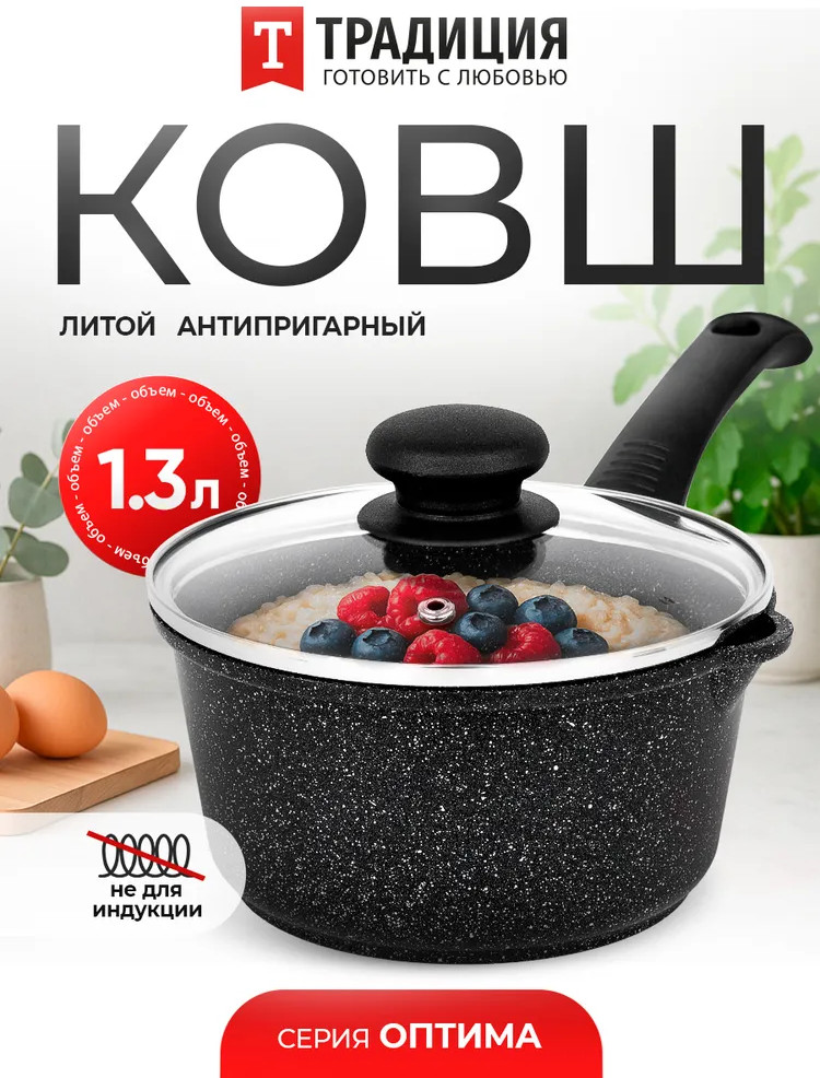 Ковш с антипригарным покрытием «Оптима» предназначен для удобного приготовления различных блюд. Изготовленный из литого алюминия, он обеспечивает равномерный и быстрый нагрев. Антипригарное покрытие позволяет готовить с минимальным количеством масла и облегчает чистку. Конструкция ковша включает стеклянную крышку, которая помогает контролировать процесс приготовления без потери тепла. Подходит для использования на газовых, электрических и стеклокерамических плитах, что делает его универсальным решением для кухни. Ковш «Оптима» сочетает в себе прочность и функциональность. Литой алюминий способствует долговечности изделия, а антипригарное покрытие сохраняет его внешний вид даже при частом использовании. Отлично комбинируется с другими кухонными принадлежностями из серии ТМ «Традиция».