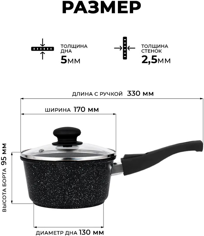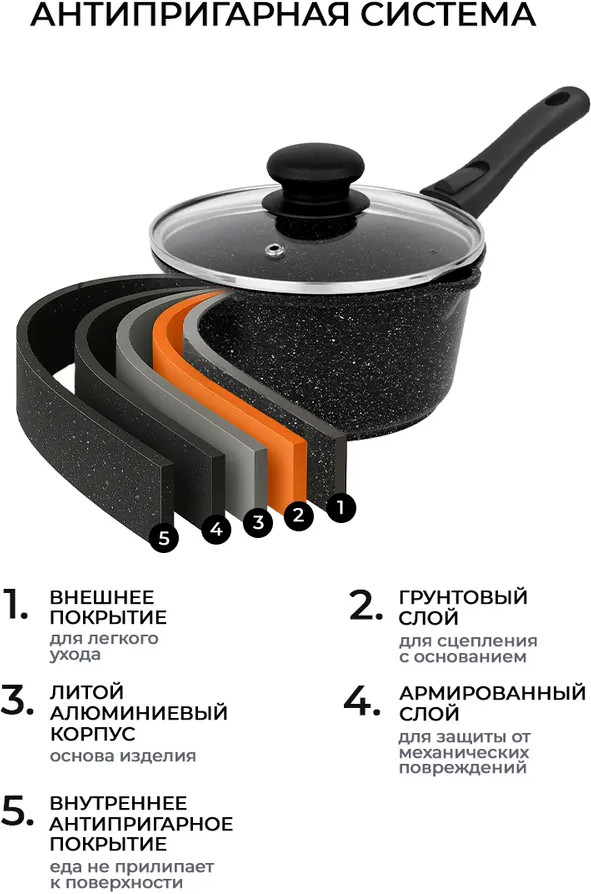 Ковш антипригарный литой со стеклянной крышкой и съемной ручкой «Оптима» ТМ «Традиция» — это идеальное решение для тех, кто ценит качество и комфорт на кухне. Этот ковшик кухонный с крышкой станет незаменимым помощником в вашем кулинарном арсенале благодаря своим уникальным характеристикам и продуманному дизайну. Изготовленный из литого алюминия, ковш кухонный обладает превосходной теплопроводностью, что обеспечивает равномерное распределение тепла по всей поверхности. Это позволяет готовить блюда быстрее и эффективнее, сохраняя их вкусовые качества и питательные свойства.