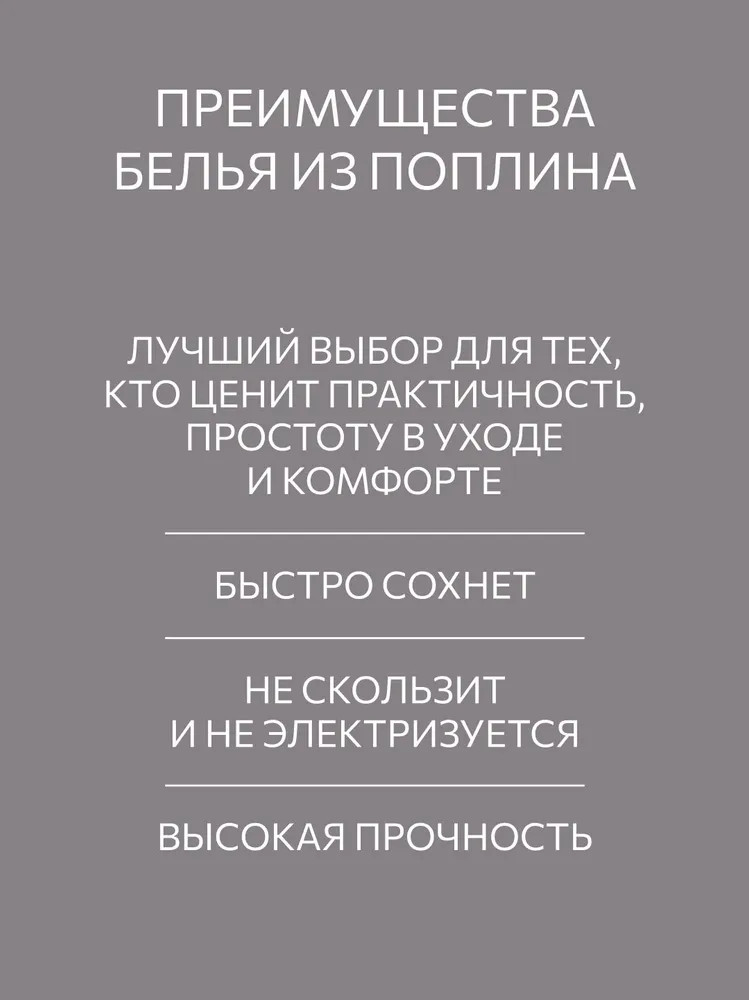 Роскошное постельное белье из натурального поплина — ваш путь к идеальному сну. Натуральное качество постельного белья из поплина покорит вас с первого прикосновения. Этот благородный материал, известный с XIV века, создан специально для тех, кто ценит комфорт и долговечность.