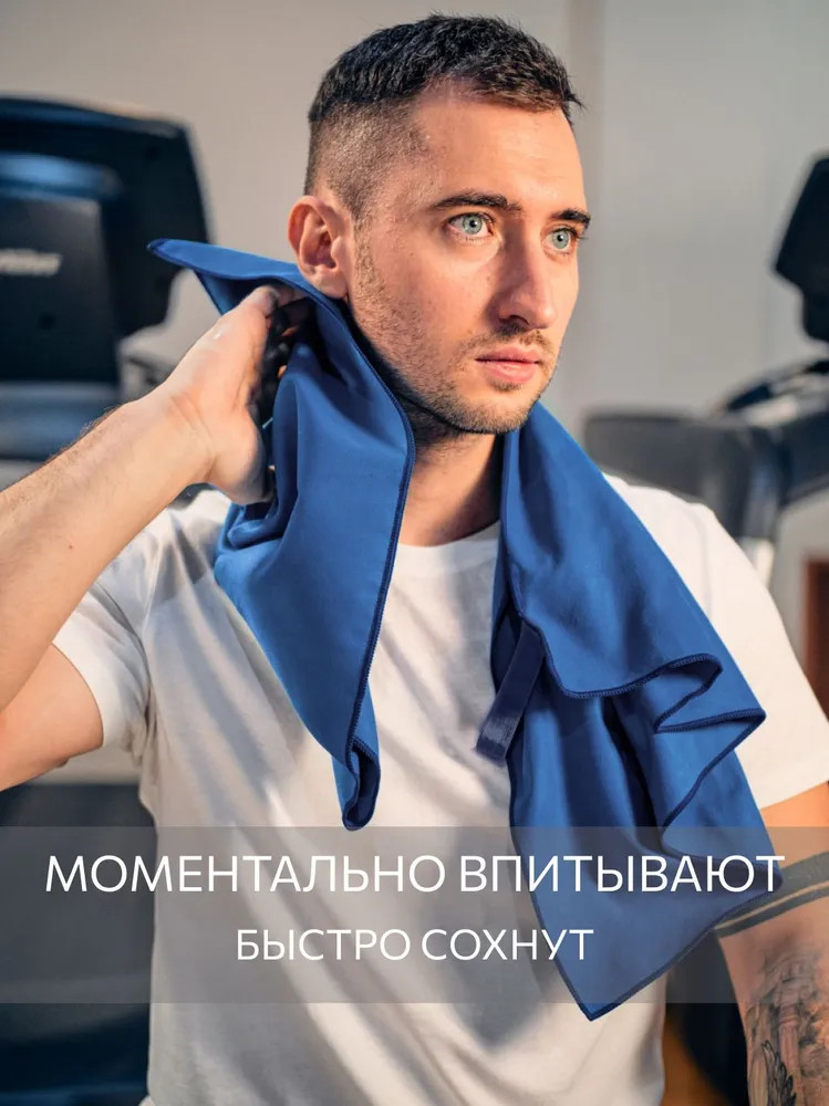 Спортивное полотенце из микрофибры незаменимо при занятиях спортом, хорошо впитывает влагу, моментально высыхает, благодаря технологии Airdrop и обладает более высокими абсорбирующими свойствами, в отличие от полотенец из льна и хлопка. Микрофибра — тонкий и быстросохнущий материал, гипоаллергенен, не несёт в себе разного рода вредные микрочастицы и бактерии. Полотенца из микрофибры, плотностью 200 гр.м2 впитывают в 6-7 раз больше своего веса, а сохнут в 3-4 раза быстрее, чем аналогичные банные полотенцам из других материалов. Буквально за 10-20 минут пока вы одеваетесь и собираете вещи оно станет совершенно сухим, особенно на солнце или в ветреный день. Полотенце из микрофибры обладает не только гигроскопичностью, но и гипоаллергенностью, а значит, у вас не возникнет нежелательных реакций. Полотенце удобно брать с собой, оно компактно складывается и удерживается, при помощи вшитой резинки, которая не потеряется. Еще один немаловажный отличительный параметр, весит такое полотенце в разы меньше, чем обычное махровое, бамбуковое, вафельное полотенце при сопоставимых размерах.