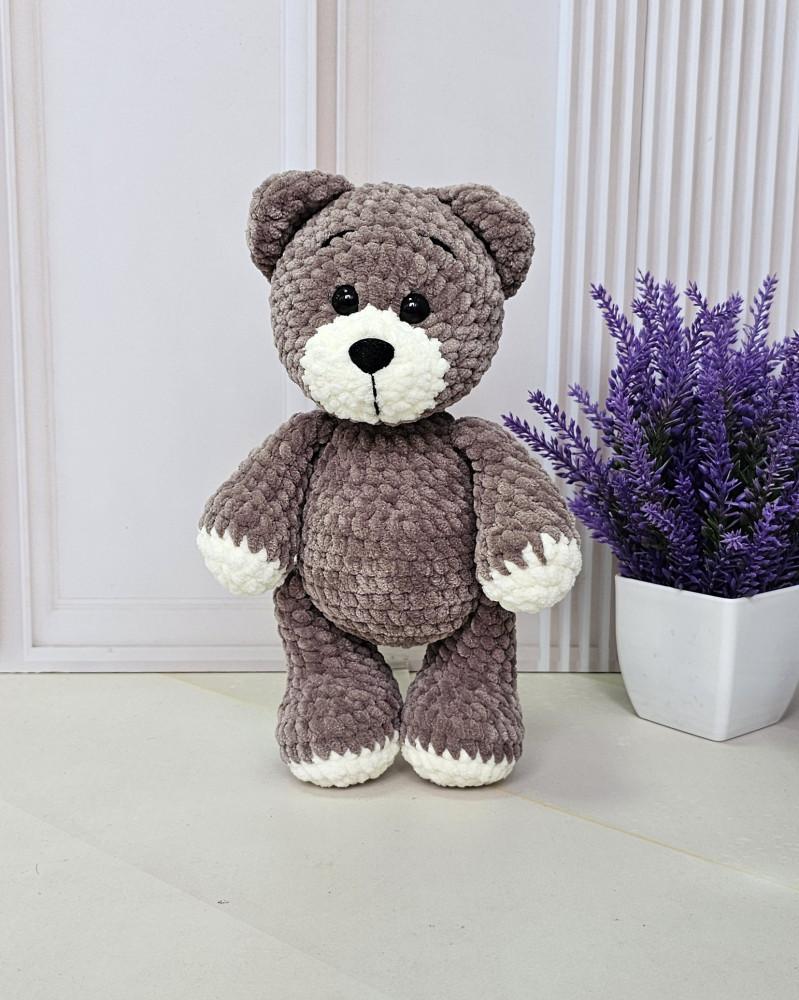 Очаровательный мишка ручной работы, связанный из мягкой гипоаллергенной плюшевой пряжи коричневого цвета с белыми лапками и мордочкой, станет любимой игрушкой и верным другом для ребёнка. Безопасные пластиковые глазки надёжно закреплены, что делает игрушку безопасной даже для малышей. Рост мишки — около 23 см. Он очень мягкий, приятный на ощупь, хорошо держит форму и станет идеальным подарком, украшением детской комнаты или тёплым сувениром для взрослого. Каждая игрушка создаётся вручную с любовью, поэтому каждая уникальна. |