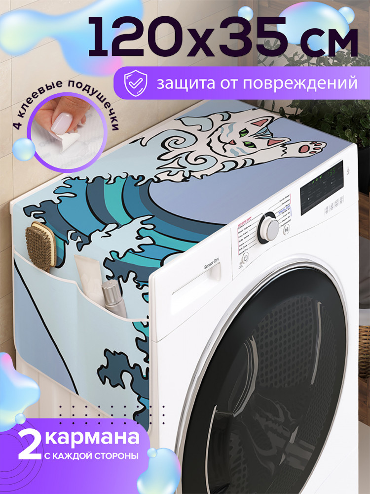 Ambesonne Чехол-накидка на стиральную машину «Кот на волне»В данный момент этот товар отсутствует в продаже. Возможно, у нас найдется аналогичный или похожий товар здесь. Прямоугольная накидка 120×35 см — практичный аксессуар для стиральной машины. Чехол изготовлен из высококачественной водоотталкивающей ткани Oxford, плотностью 210 гр/кв.м., которая обеспечивает защиту от пыли и грязи. Крепление состоит из 4 клеевых фиксаторов (идут в комплекте). Двустороннее покрытие и липкий слой предотвращают смещение чехла во время работы техники. Рекомендуется протереть поверхность перед наклейкой липучек, снять защитную пленку и приклеить в нужное место. Органайзер имеет по два кармашка сбоку для хранения полезных мелочей и бытовых предметов. Изделие можно стирать при температуре 30-40 градусов (деликатный режим). Яркость рисунка может отличаться от изображения на сайте. Допустимо отклонение в размерах ± 2 см. |