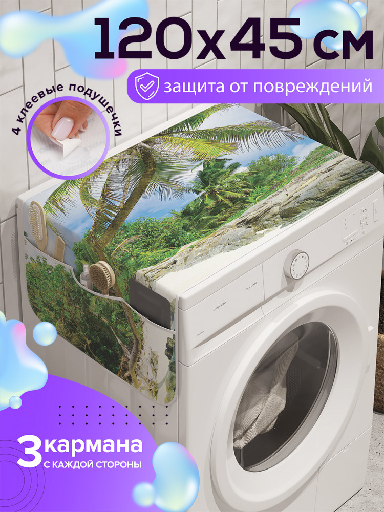 Ambesonne Чехол-накидка на стиральную машину «Экзотический день»В данный момент этот товар отсутствует в продаже. Возможно, у нас найдется аналогичный или похожий товар здесь. Прямоугольная накидка 120×45 см — практичный аксессуар для стиральной машины. Чехол изготовлен из высококачественной водоотталкивающей ткани Oxford, плотностью 210 гр/кв.м., которая обеспечивает защиту от пыли и грязи. Крепление состоит из 4 клеевых фиксаторов (идут в комплекте). Двустороннее покрытие и липкий слой предотвращают смещение чехла во время работы техники. Рекомендуется протереть поверхность перед наклейкой липучек, снять защитную пленку и приклеить в нужное место. Органайзер имеет по три кармашка сбоку для хранения полезных мелочей и бытовых предметов. Изделие можно стирать при температуре 30-40 градусов (деликатный режим). Яркость рисунка может отличаться от изображения на сайте. Допустимо отклонение в размерах ± 2 см. |