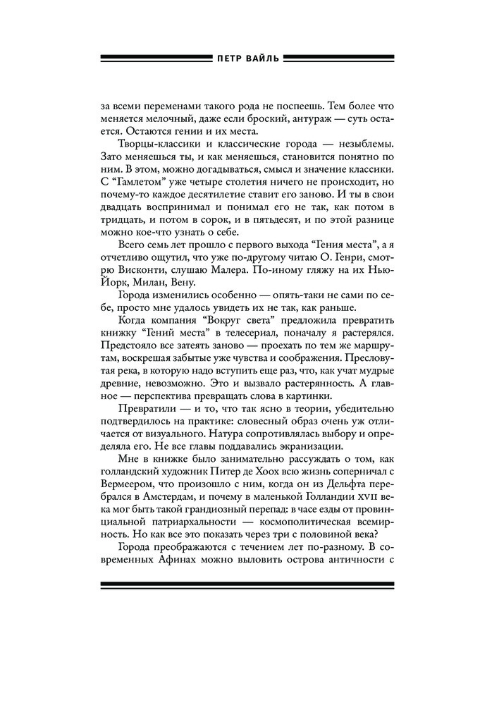 Журналист, но не историк, Вайль поверхностно проходится по городам и странам. Для простого обывателя может быть путеводителем и планировщиком маршрутов. Качество данного издания среднее, бумага тонкая, но переплет качественный.