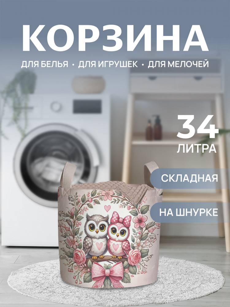 Крепкие ручки и легкость материала позволяют использовать контейнер не только под грязное белье, но и для хранения игрушек, сумок, обуви и других аксессуаров. Верхняя часть закрывается текстильной вставкой с завязками, как крышка, что позволяет скрыть содержимое изделия. Напольный круглый мешок занимает минимальное количество места, легко перемещается при уборке и не царапает пол, в отличие от пластикового ящика.