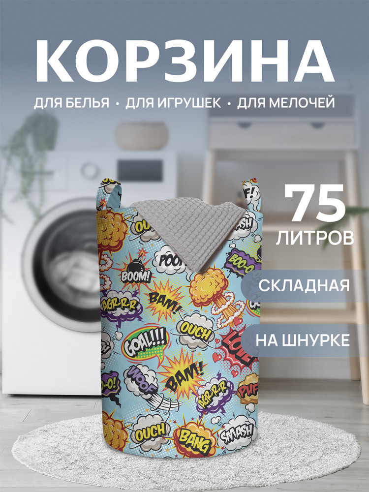 Крепкие ручки и легкость материала позволяют использовать контейнер не только под грязное белье, но и для хранения игрушек, сумок, обуви и других аксессуаров. Верхняя часть закрывается текстильной вставкой с завязками, как крышка, что позволяет скрыть содержимое изделия. Напольный круглый мешок занимает минимальное количество места, легко перемещается при уборке и не царапает пол, в отличие от пластикового ящика.