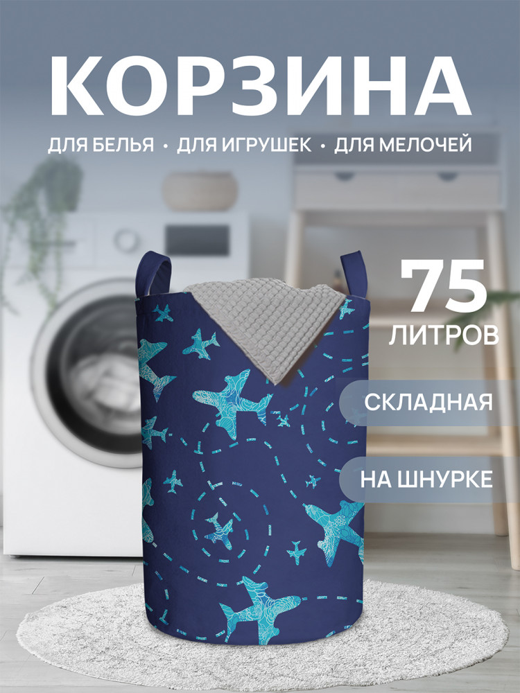 Крепкие ручки и легкость материала позволяют использовать контейнер не только под грязное белье, но и для хранения игрушек, сумок, обуви и других аксессуаров. Верхняя часть закрывается текстильной вставкой с завязками, как крышка, что позволяет скрыть содержимое изделия. Напольный круглый мешок занимает минимальное количество места, легко перемещается при уборке и не царапает пол, в отличие от пластикового ящика.