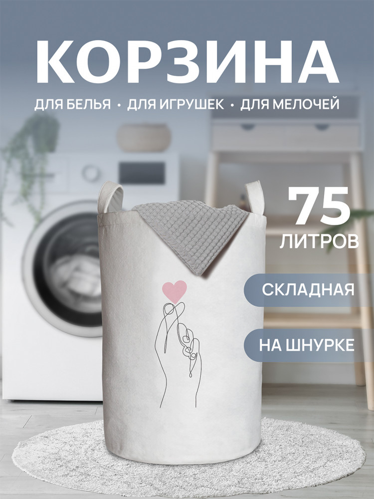 Крепкие ручки и легкость материала позволяют использовать контейнер не только под грязное белье, но и для хранения игрушек, сумок, обуви и других аксессуаров. Верхняя часть закрывается текстильной вставкой с завязками, как крышка, что позволяет скрыть содержимое изделия. Напольный круглый мешок занимает минимальное количество места, легко перемещается при уборке и не царапает пол, в отличие от пластикового ящика.