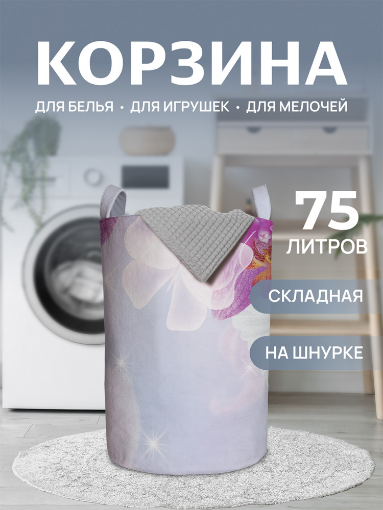 Крепкие ручки и легкость материала позволяют использовать контейнер не только под грязное белье, но и для хранения игрушек, сумок, обуви и других аксессуаров. Верхняя часть закрывается текстильной вставкой с завязками, как крышка, что позволяет скрыть содержимое изделия. Напольный круглый мешок занимает минимальное количество места, легко перемещается при уборке и не царапает пол, в отличие от пластикового ящика.