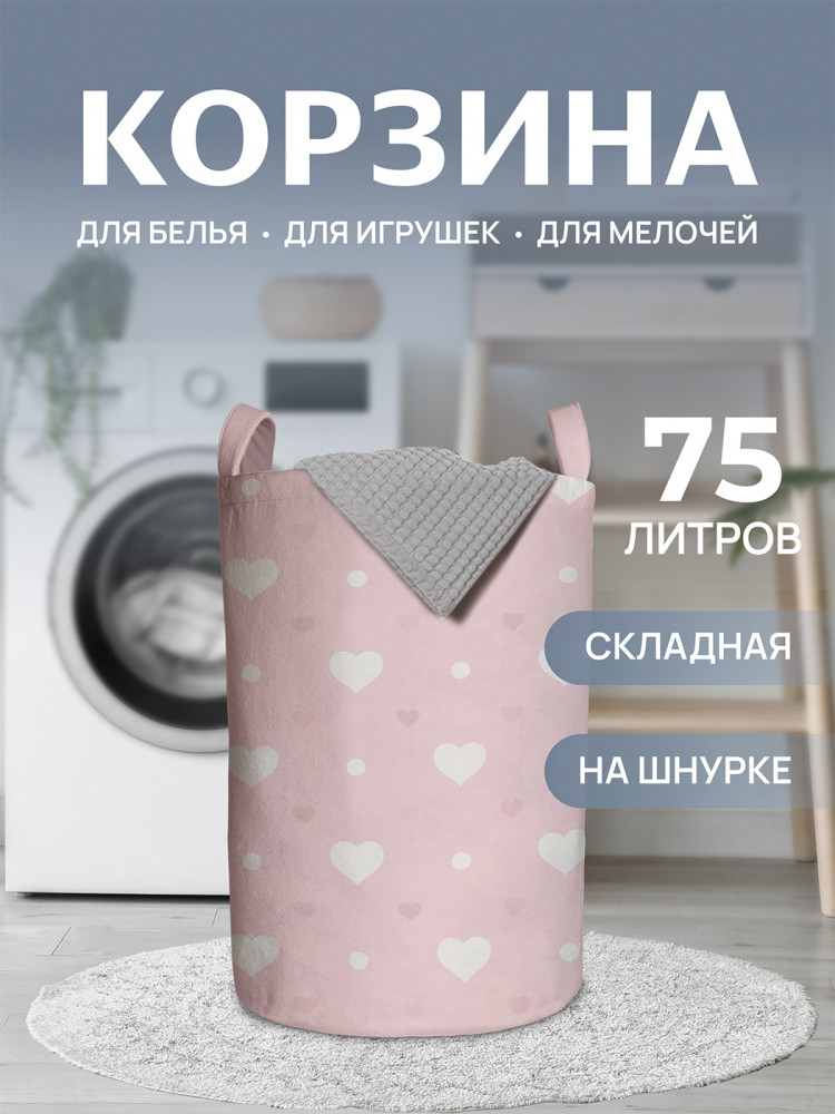 Крепкие ручки и легкость материала позволяют использовать контейнер не только под грязное белье, но и для хранения игрушек, сумок, обуви и других аксессуаров. Верхняя часть закрывается текстильной вставкой с завязками, как крышка, что позволяет скрыть содержимое изделия. Напольный круглый мешок занимает минимальное количество места, легко перемещается при уборке и не царапает пол, в отличие от пластикового ящика.