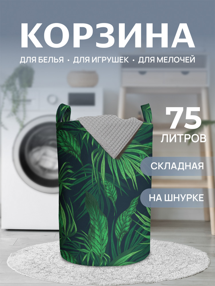 Крепкие ручки и легкость материала позволяют использовать контейнер не только под грязное белье, но и для хранения игрушек, сумок, обуви и других аксессуаров. Верхняя часть закрывается текстильной вставкой с завязками, как крышка, что позволяет скрыть содержимое изделия. Напольный круглый мешок занимает минимальное количество места, легко перемещается при уборке и не царапает пол, в отличие от пластикового ящика.