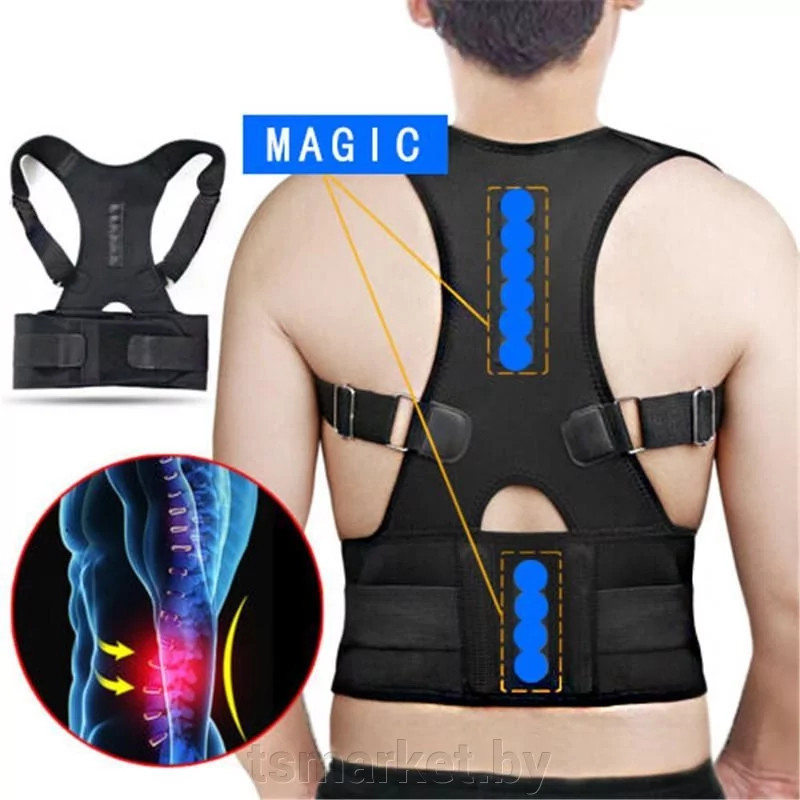 Корсет для спины способствует восстановлению физиологической линии позвоночника и избавляет от сутулости. Носить для осанки корректор можно в течение одного-двух часов в день. Он почти незаметен под одеждой. Корсет ортопедический также снимает отеки, устраняет воспаления, восстанавливает нервную и сердечно-сосудистую системы. Удобная липучка помогает располагать корректор для осанки магнитный на теле плотно и комфортно, так корсет не сковывает движения. Без помощи специалистов Ваша осанка укрепится, а позвоночник выровняется. Благодаря широким лямкам плечи физиологически оттягиваются назад — спина расправляется, а корпус фиксируется в правильном положении.