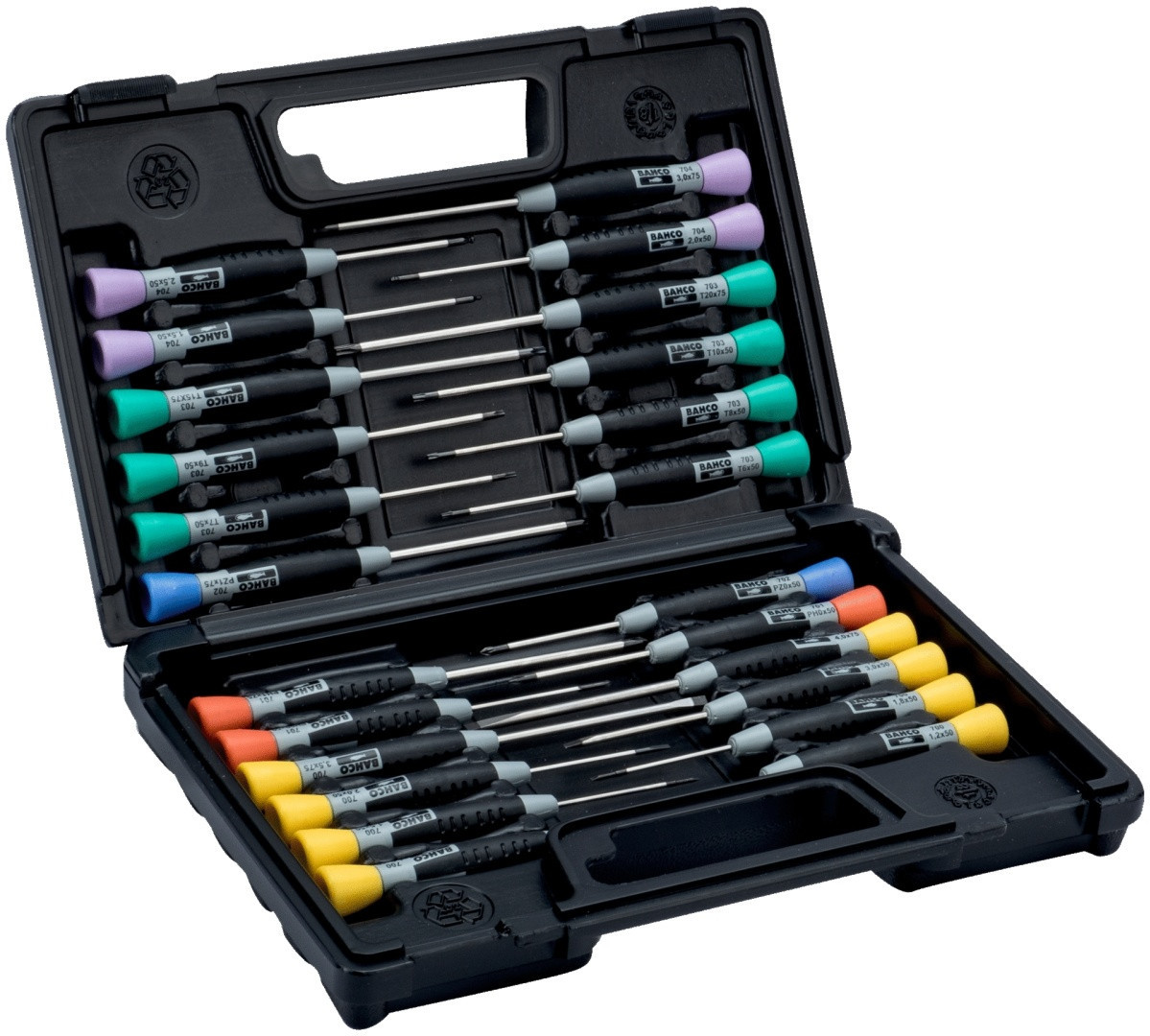 В данный момент этот товар отсутствует в продаже. Возможно, у нас найдется аналогичный или похожий товар здесь. В комплекте 24 отвёртки: 1,0×50, 1,2×50, 1,5×50, 1,8×50, 2,0×50, 3,0×50, 3,5×75, 4,0×75, PH00×50, PH0×50, PH1×75, PZ0×50, PZ1×75, T6×50, T7×50, T8×50, T9×50, T10×50, T15×75, T20×75, H1.5×50, H2×50, H2.5×50, H3×75.